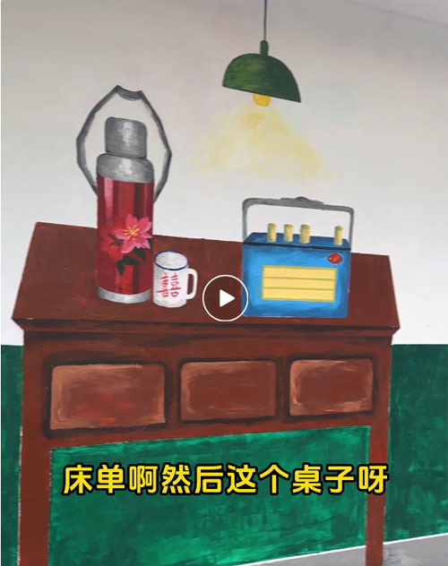 更温暖的是,墙绘还激活了代际对话。玉桥小区里,年轻人跟着长辈“认物”:“妈,这‘鸳鸯牌床单’是不是你结婚时的陪嫁?”“爸,‘活力28’洗衣粉的广告语是不是‘活力28,沙市日化’?”长辈们则借着墙绘讲起沙市工业的辉煌过往,孩子们蹲在墙下画速写,把“老物件”变成了新兴趣。
