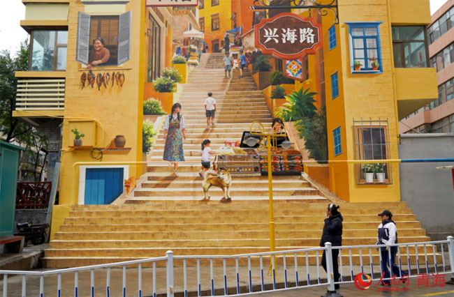 兴海路老街极具特色的3D立体墙体彩绘引市民驻足