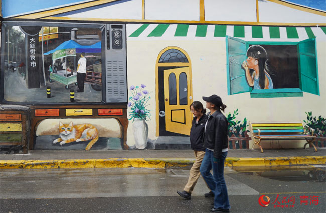 崭新的彩绘墙与往来的行人,一同编织着老街的新故事