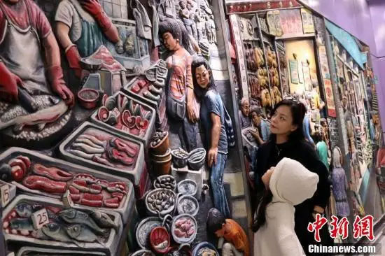 这里是香港地铁首设的浮雕壁画,总面积逾8600平方尺。浮雕场景包括具“老西环”特色的海味干货店、日用品杂货店及街市等旧式店铺,将市井百姓的生活日常栩栩如生地呈现出来。
