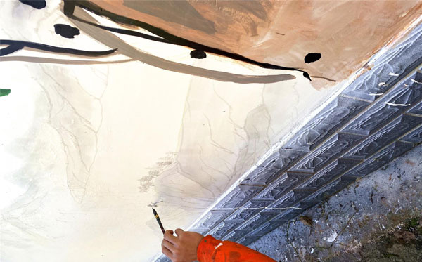 画完了要整体检查一遍,是否有漏画或者需要调整的地方、画面是否协调和搭配、色调是否一致、画面有没有脏的感觉、线条是否存在杂乱、毛边的情况,如果有要进行调整,建议在绘画过程中也要中途停下,因为多数情况下在脚手架上画的时候看不到整体效果,所以绘画过程中间隔一段时间要远距离看一下画面大效果是否需要调整。