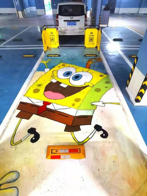 随后,有不少网友称,用图画装扮私家车位的方式将地下车库“点亮”,色彩明亮的画让人耳目一新,让简单的开车停车变成一件很有乐趣的事。